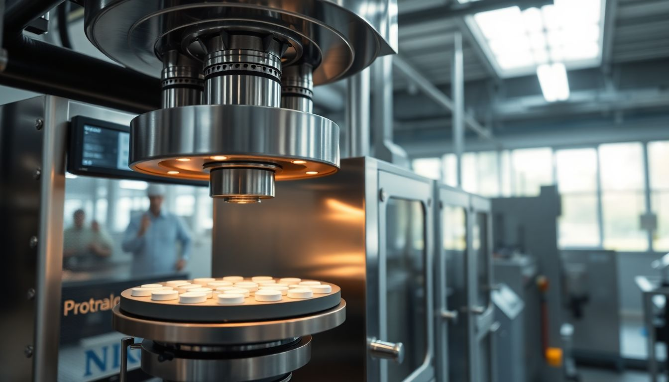 Преимущество Fette заключается в точной роторной механике и гибких установках с несколькими станциями. Возьмите Фетте 1200 . Его конструкция из 24 станций и основное сжатие с усилием 80 кН обеспечивают производительность около 216 000 таблеток в час при стабильной производительности. Для более жестких формул модели высокого класса, такие как P3100 , используют двустороннюю конструкцию. Основное сжатие достигает 10 тонн . Глубина заполнения 18 мм повышает устойчивость к сложным гранулам.